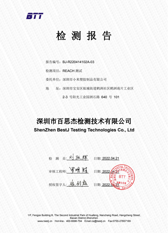 塑料托盤2022年REACH檢測(cè)報(bào)告